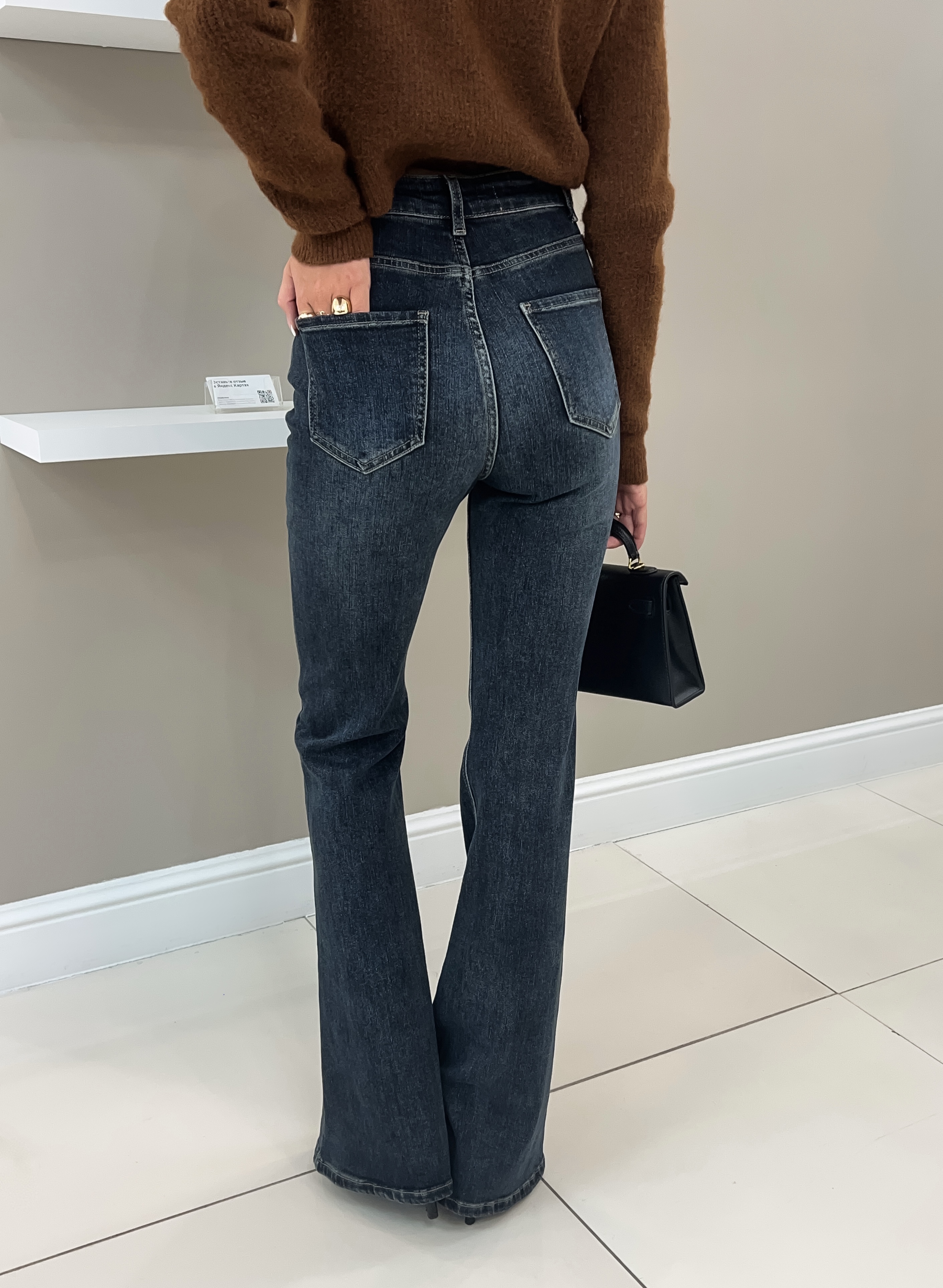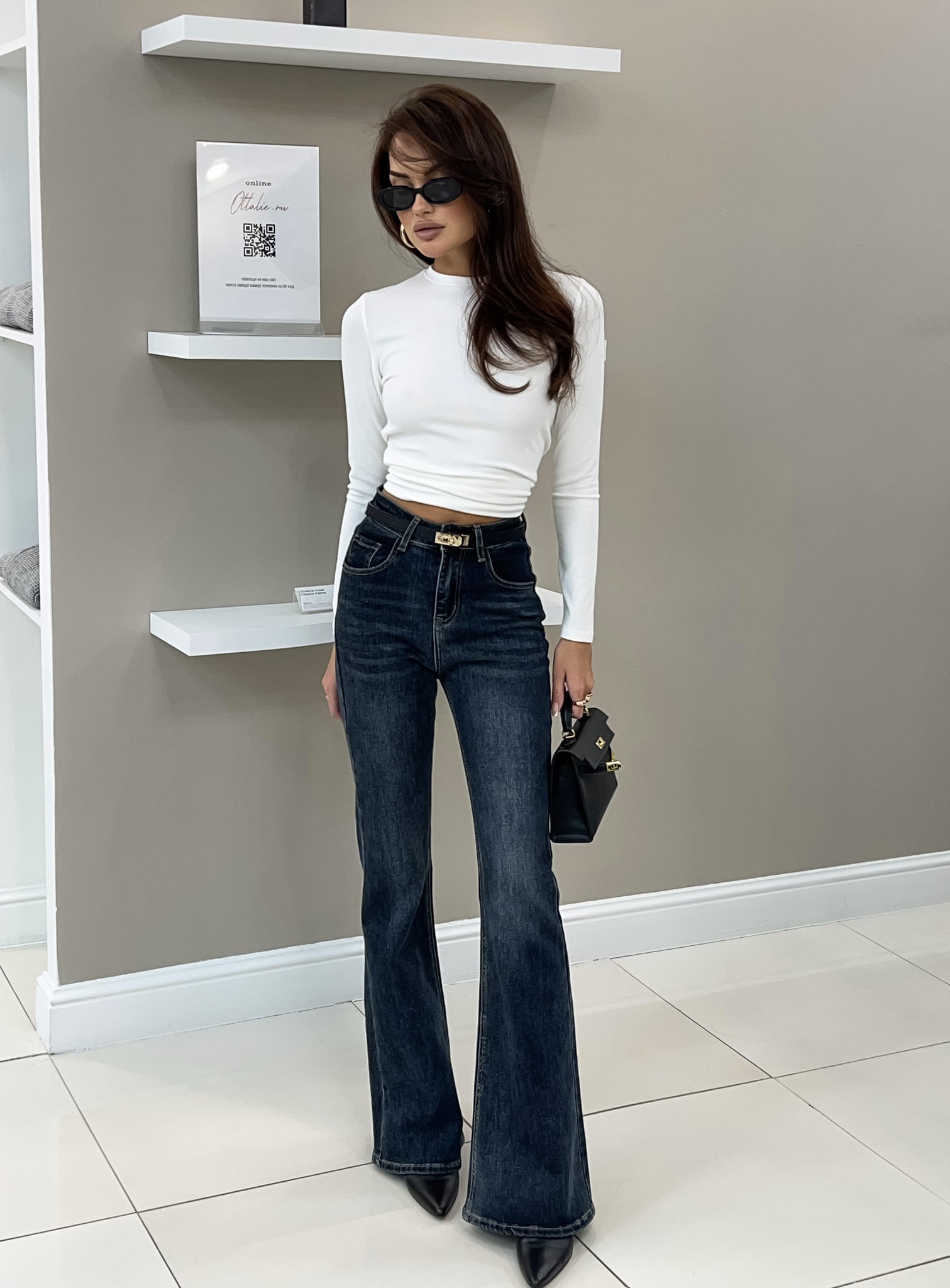 Трендовые джинсы клеш из качественного денима. Посадка высокая. Деним тянется. Джинсы миниатюрные, в обтяжку, руководствуйтесь параметрами в таблице.