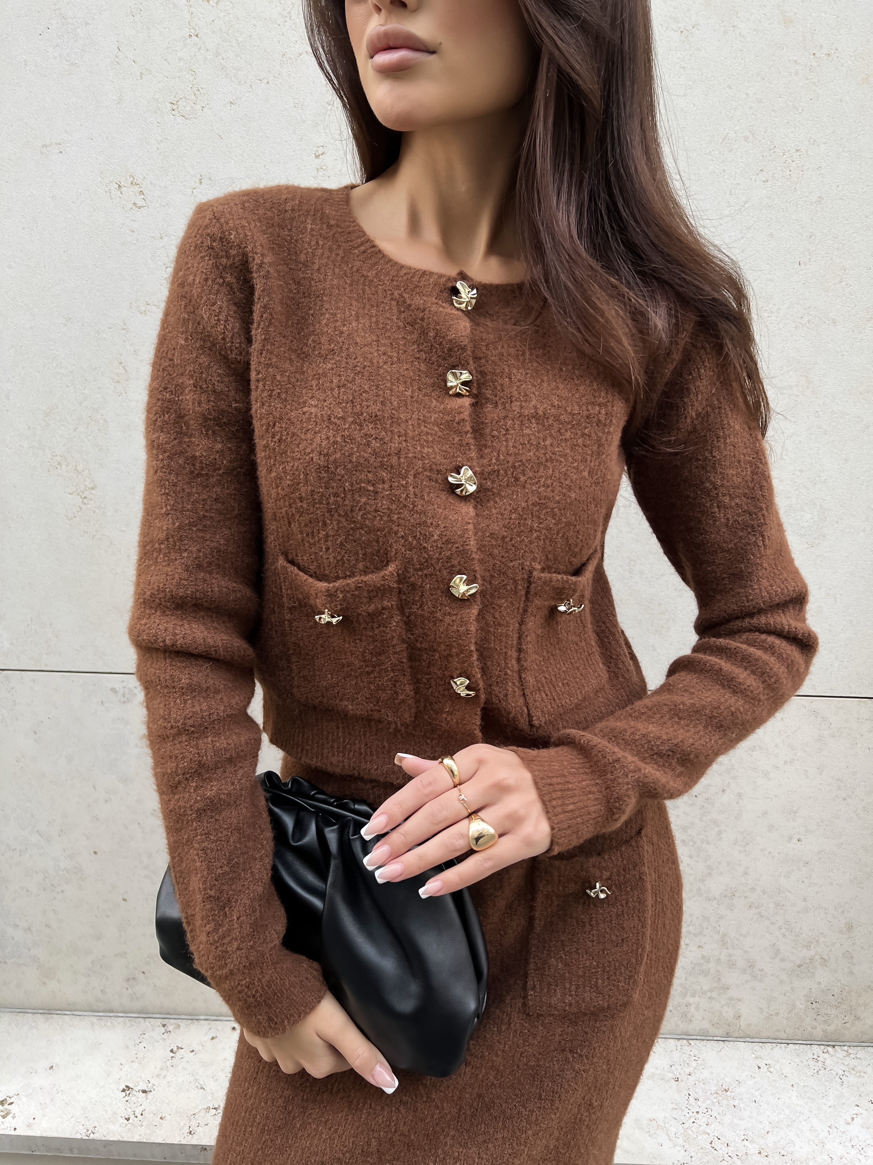 Укороченный кардиган на пуговицах. Размер единый. Подходит на XS/S/M. Составит комплект с юбкой Divine.