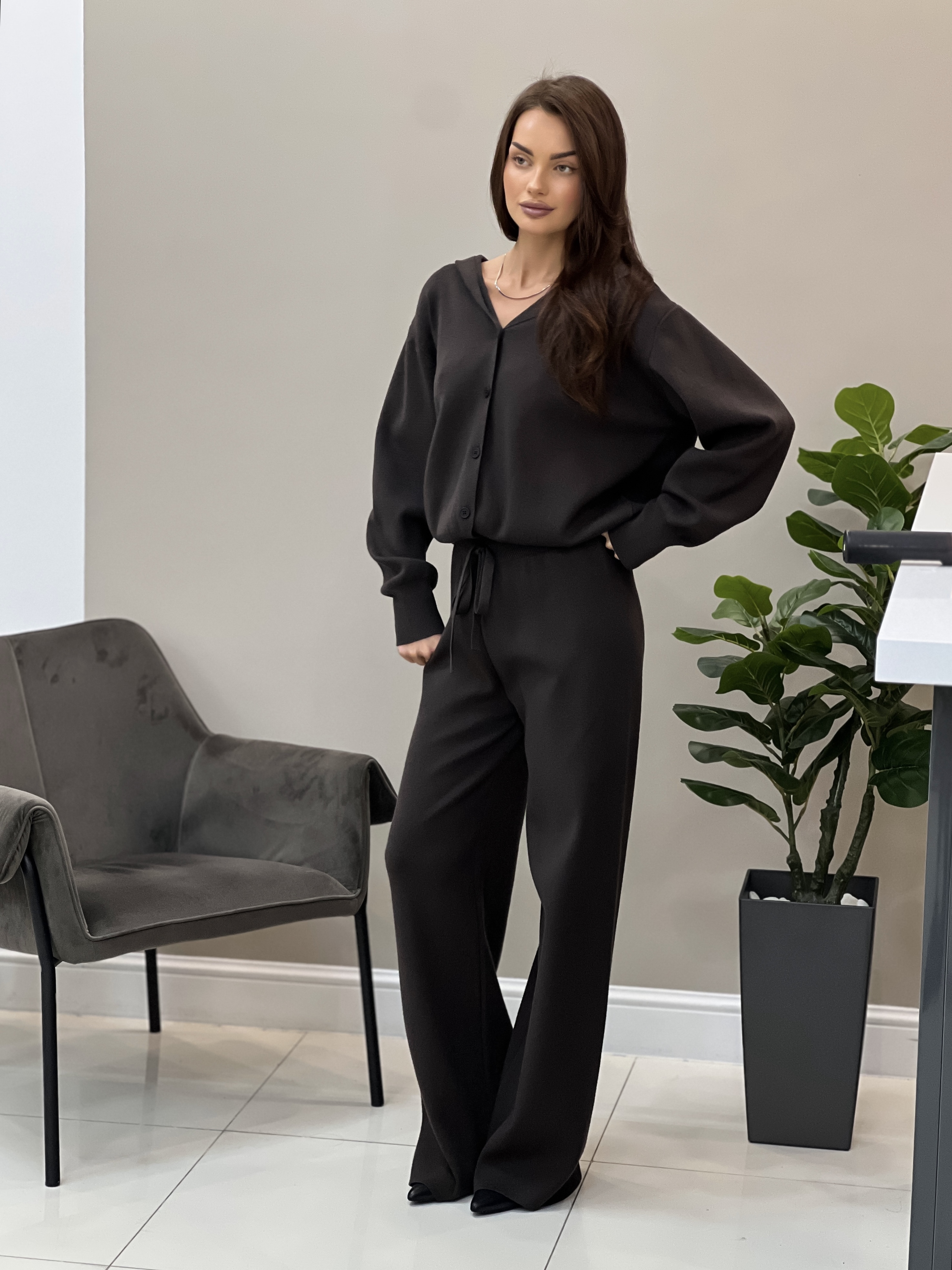 Кардиган с капюшоном из мягкого трикотажа. Размер единый. Подходит на XS/S/M. Талия на резинке. Составит комплект с брюками Aspen.