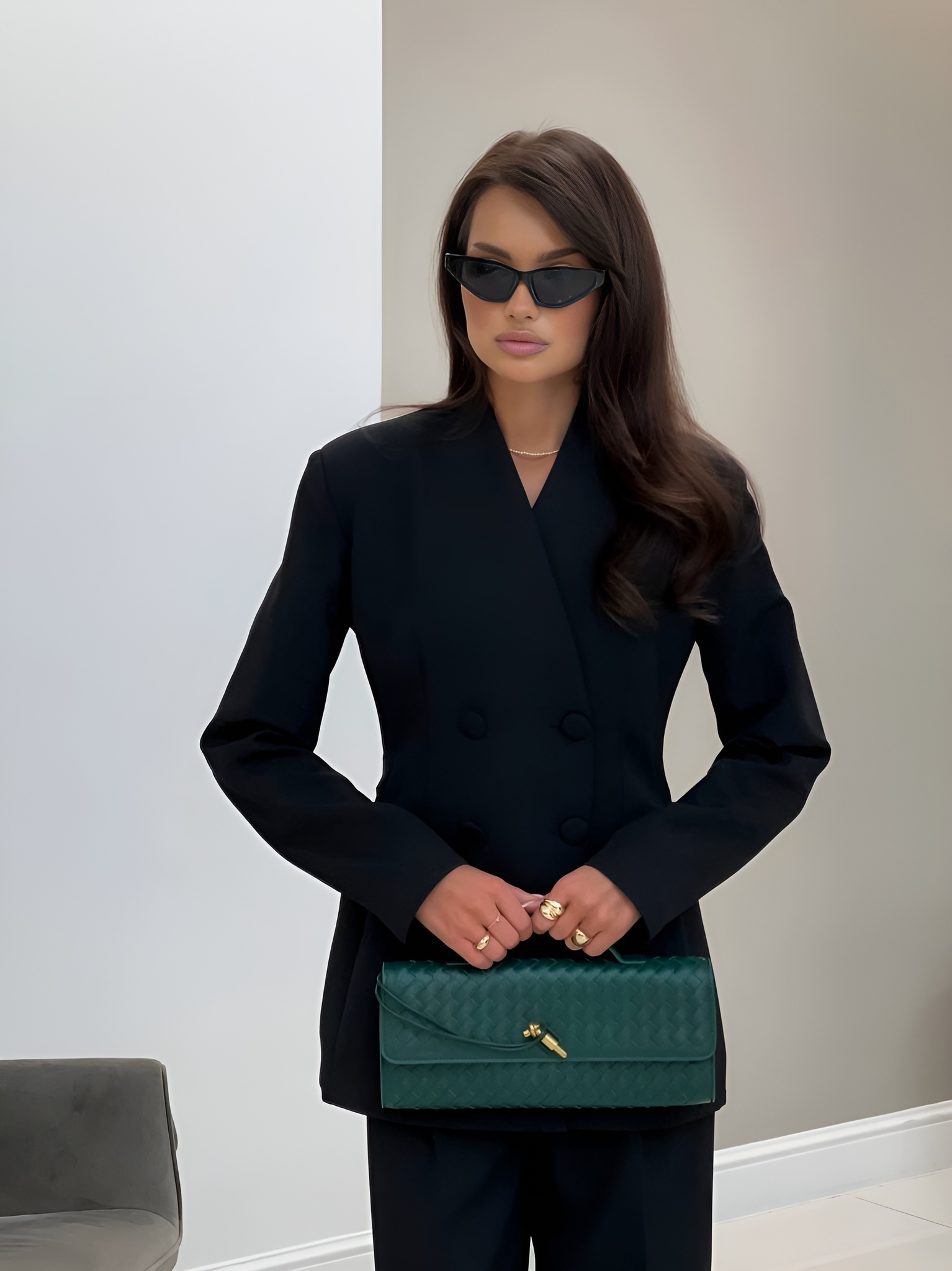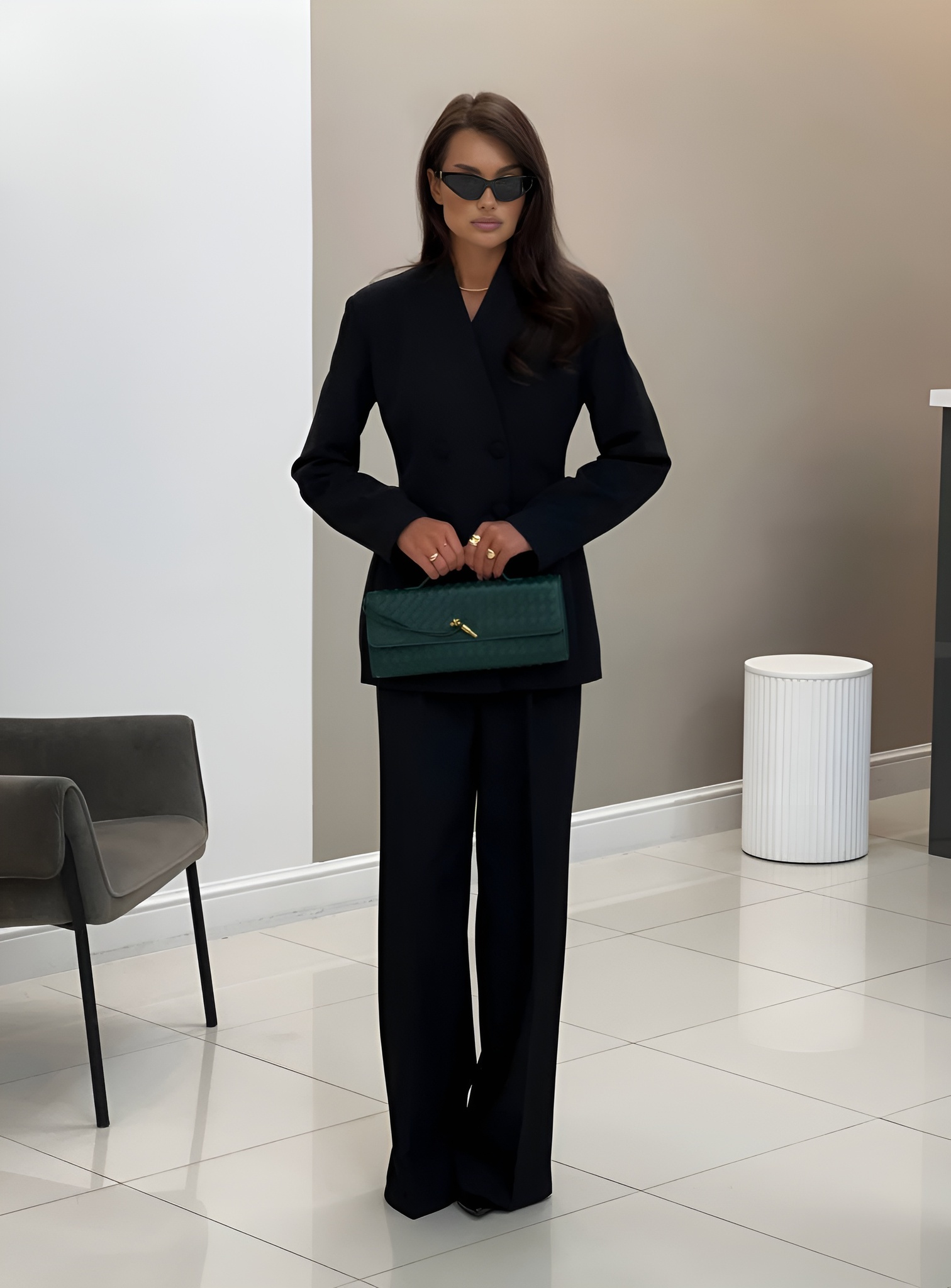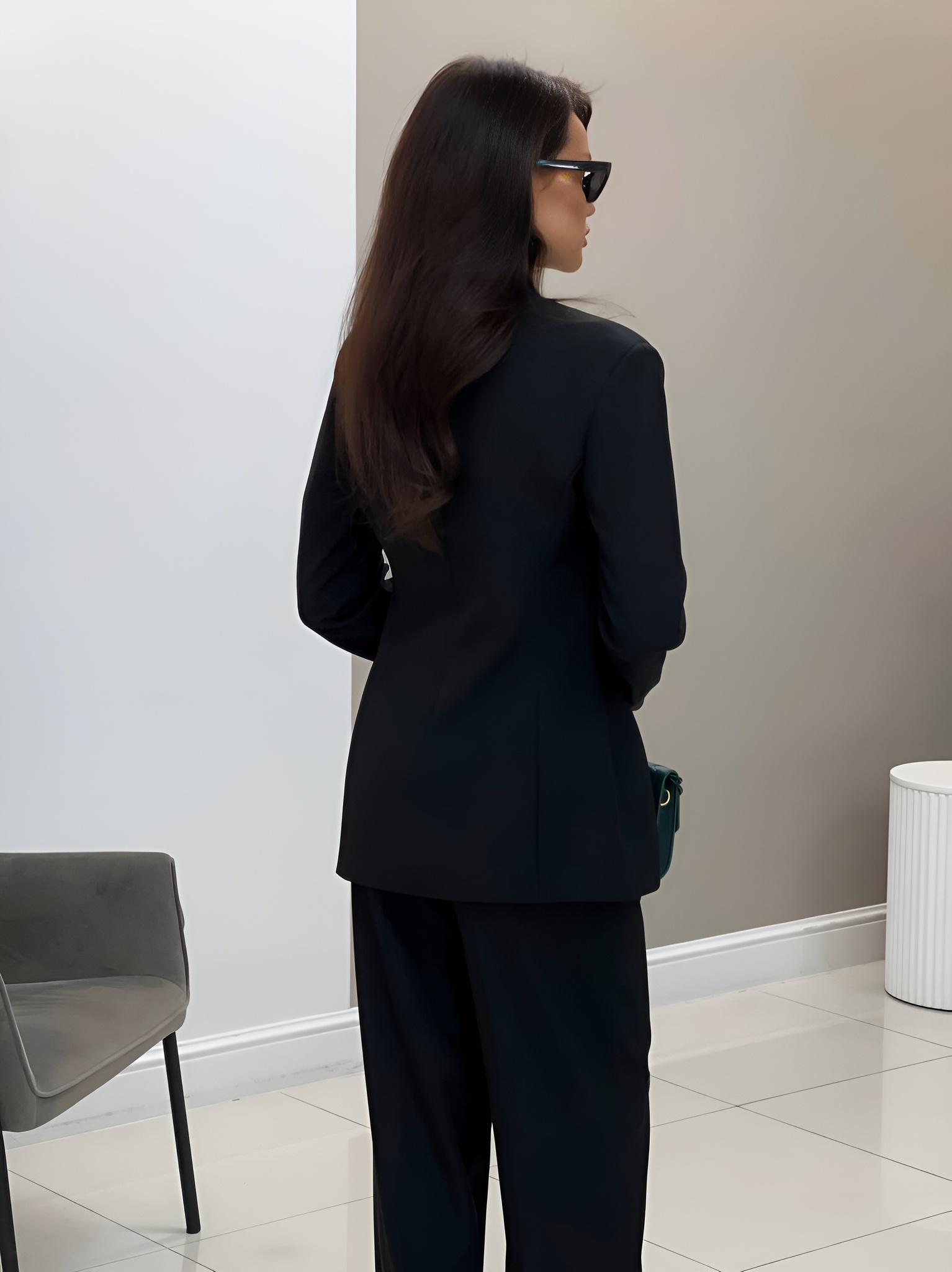 Параметры модели: ОГ 85 см, ОТ 62 см, ОБ 86 см. Рост модели 166 см. На модели костюм в размере 42.