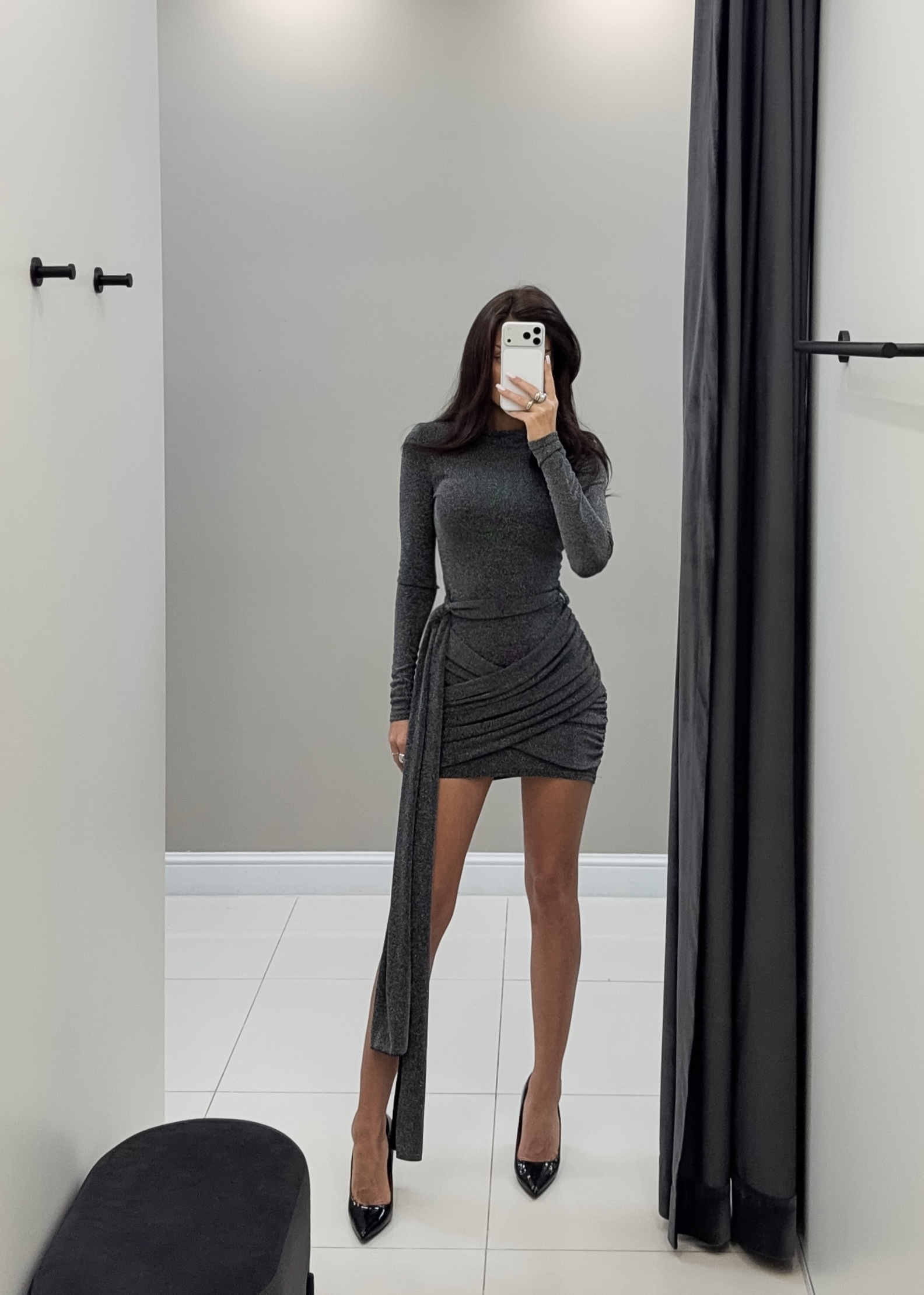 Платье из эластичной ткани с люрексом. Пояс в комплекте.